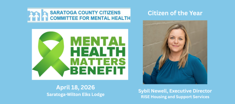 We are honored to share that Sybil Newell, Executive Director, will be honored as the Saratoga County Citizens Committee for Mental Health (SCCCMH) Citizen of the Year at the annual Mental Health Matters Benefit on Saturday, April 18, 2026 at the Saratoga-Wilton Elks Lodge.