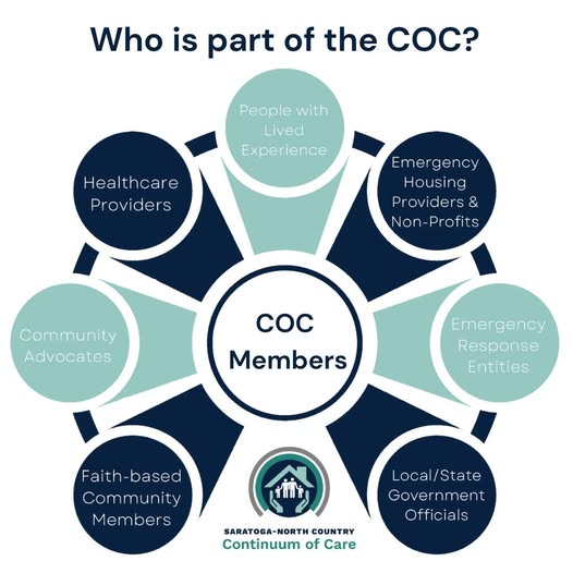 The Saratoga North Country COC is accepting new member agencies. Members meet two times per year, in May and October. All meetings are virtual via Zoom at this time. Membership includes the right to vote on matters impacting the CoC, though non-members are both welcome and encouraged to participate in discussions.