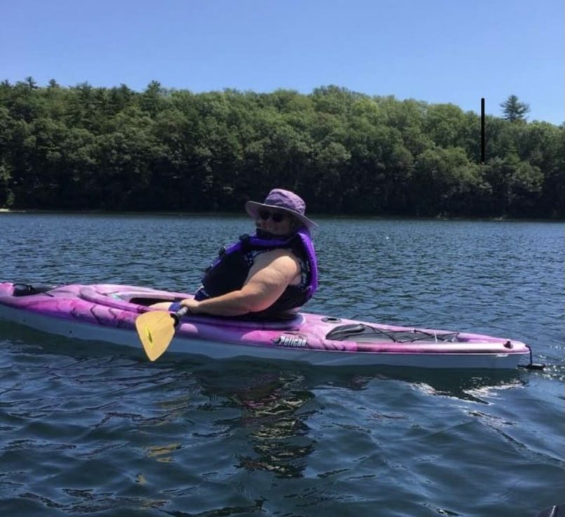 Amber and Andy peeing out the window of Amber’s Sunflowers and Butterflies Door